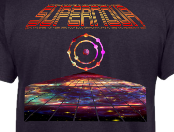 Our original and only source of neon is an ancient supernova which gave rise to everything in our solar system, including us. Sent from the stars for our illumination and happiness. This design sandwiches our manmade descriptions for neon between two representations of supernova.